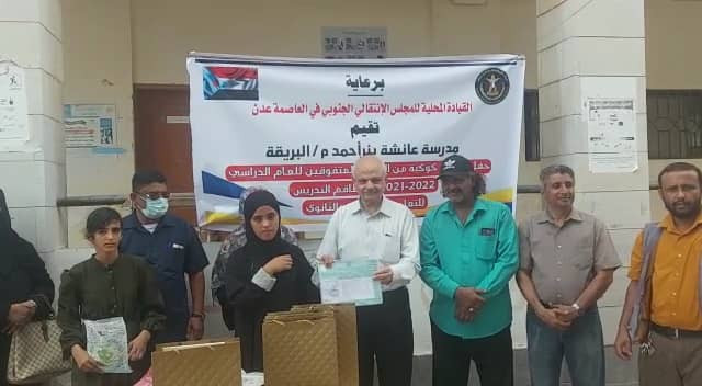 نظم مجمع عائشة التربوي والتعليمي في منطقة بئر أحمد بمديرية البريقة للتعليم الاساسي والثانوي "بنات" ، صباح اليوم، حفل تكريم لأوائل الطالبات والمتفوقات بالمجمع للعام 2021م -- 2022م، تحت رعاية ودعم القيادة المحلية للمجلس الانتقالي الجنوبي في العاصمة عدن