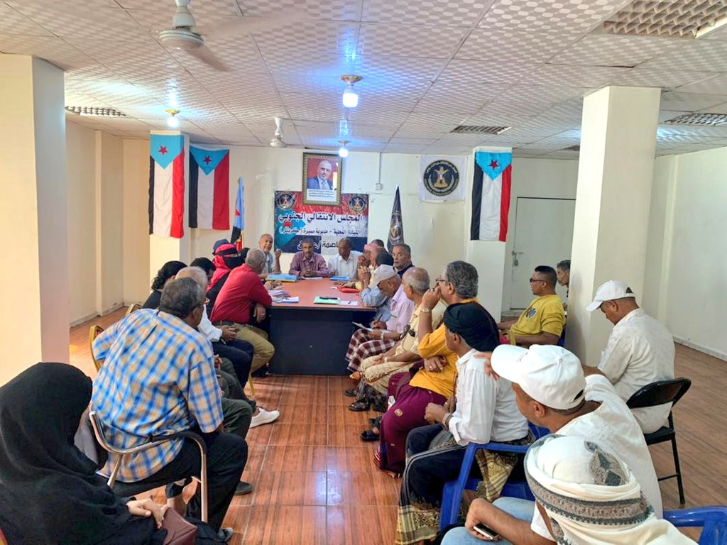واكد جارالله خلال اللقاء ان قيادة المجلس الانتقالي ستبذل قصار جهدها في توفير الاجواء الملائمة لعمل اللجان وتذليل الصعاب وحلحلة المشاكل التي تعترض عملها وفقاََ للامكانيات المتاحة، مشددا على اهمية التقييم الدوري لنشاط أعضاء اللجان والارتقاء بالعمل التنظيمي وتحقيق نموذجا افضل اسوةً بباقي المديريات .