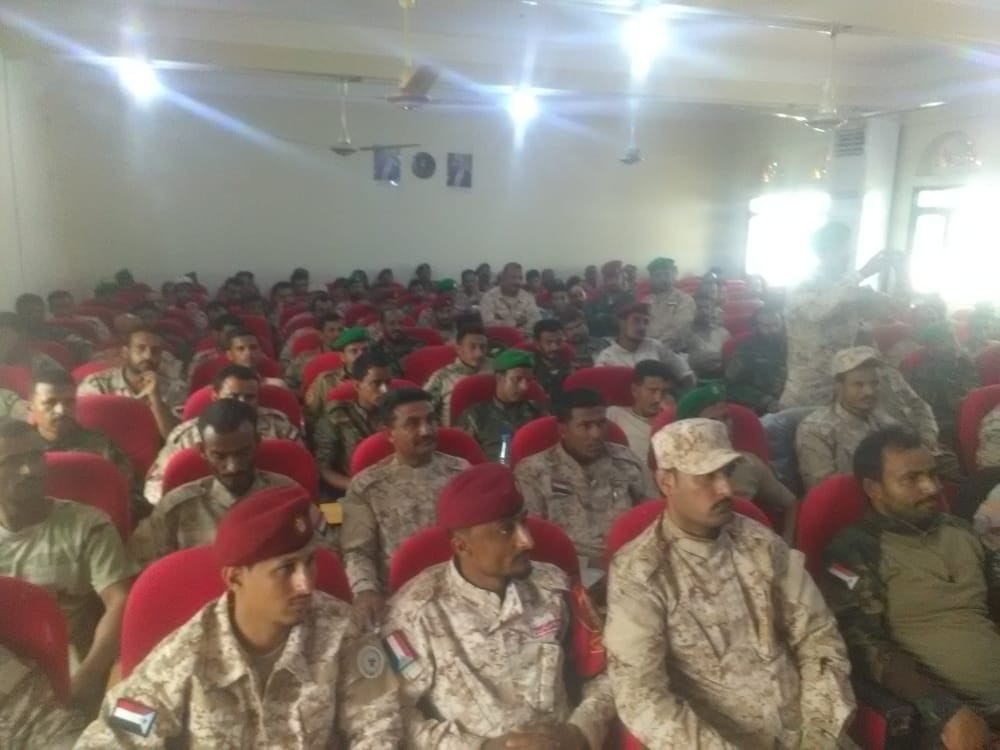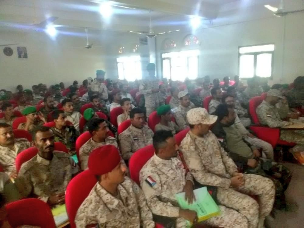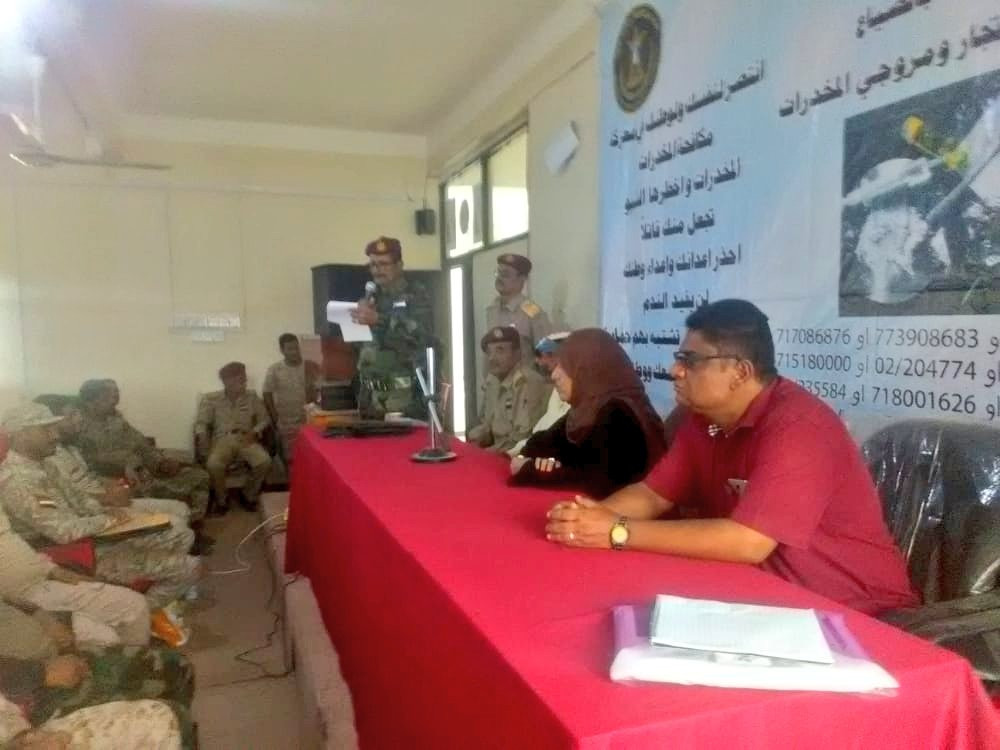 انتقالي البريقة ينظم ندوة توعوية حول خطر المخدرات في معهد الثلايا لتأهيل القادة والضباط بصلاح الدين .