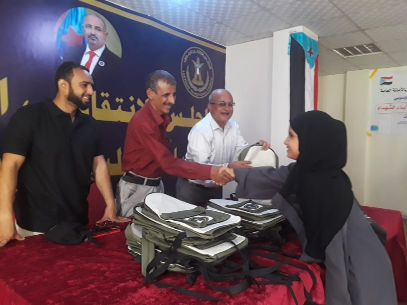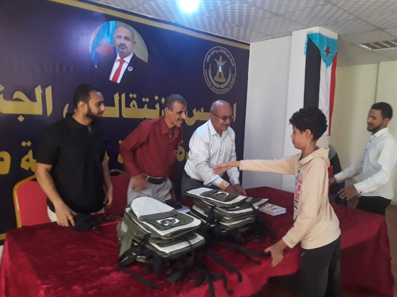 وزعت إدارة الفكر والإرشاد بالقيادة المحلية للمجلس الانتقالي الجنوبي في صيرة بالعاصمة عدن، صباح اليوم، حقائب مدرسية للطلبة الأشد احتياجاً في المديرية بحضور الدكتور علي البحر، نائب رئيس دائرة الفكر والارشاد بالامانة العامة للمجلس، والعقيد محمد حسين جار الله، رئيس الهيئة التنفيذية بانتقالي صيرة.