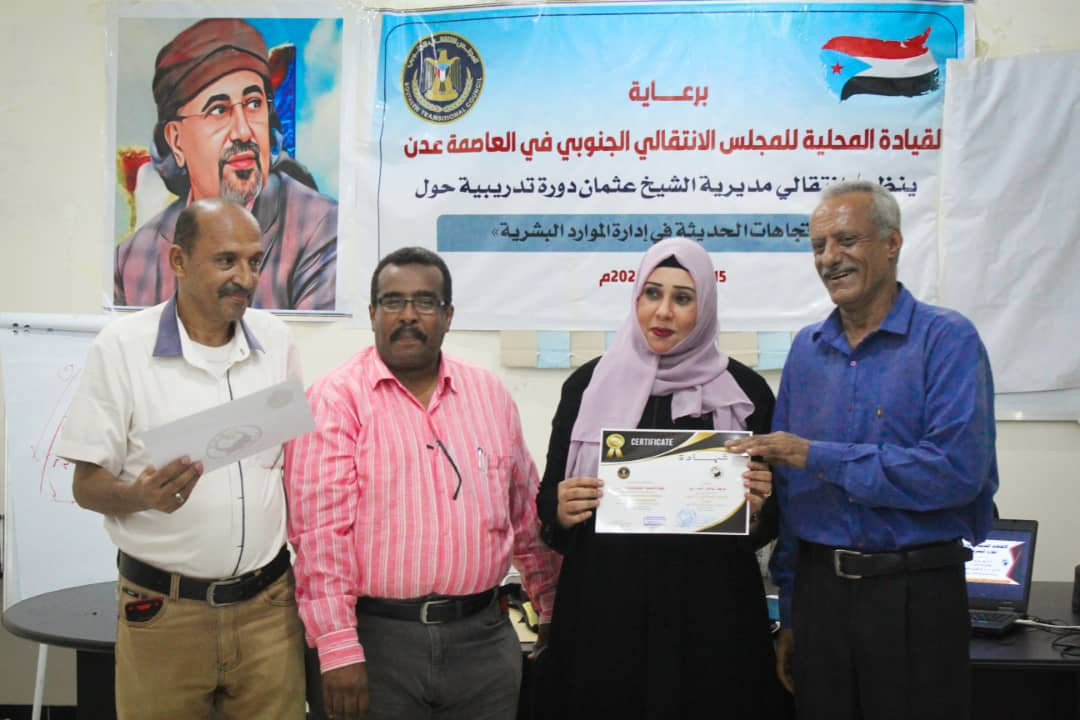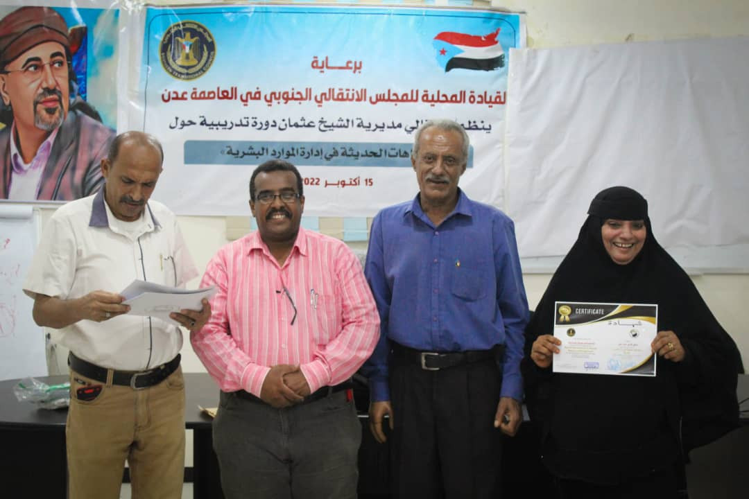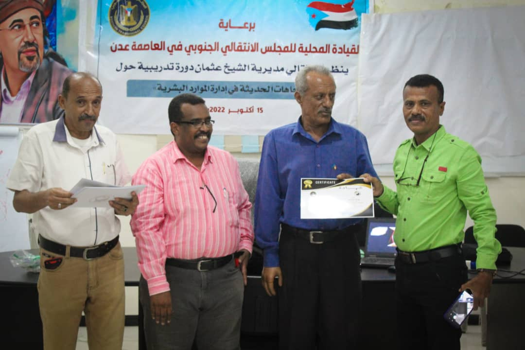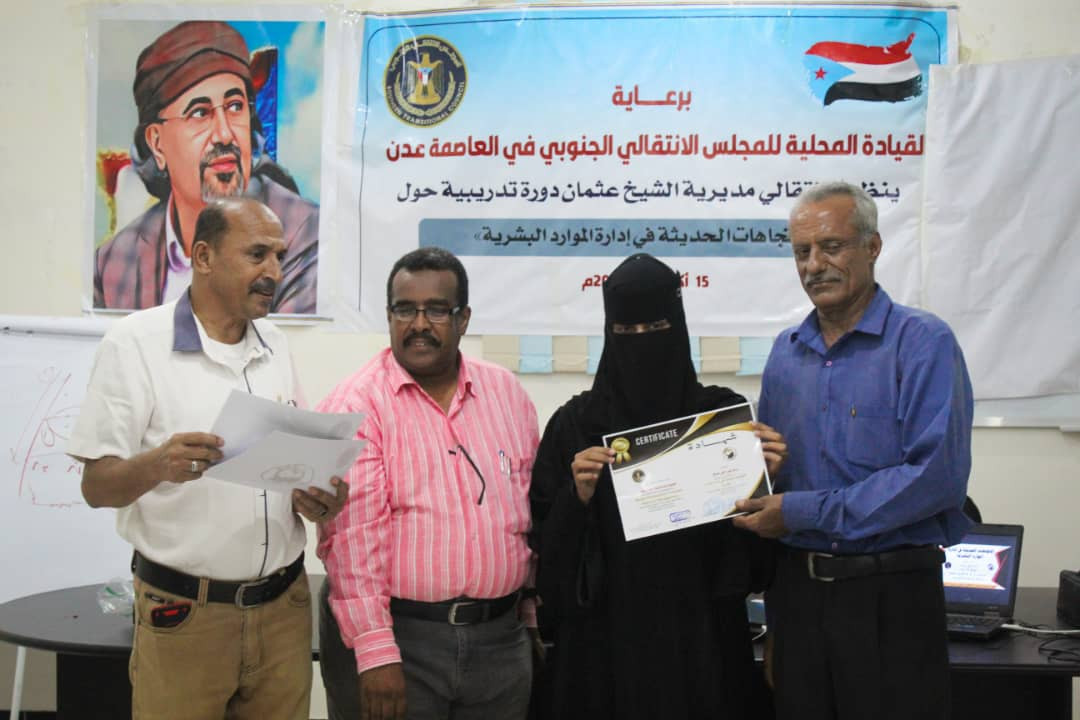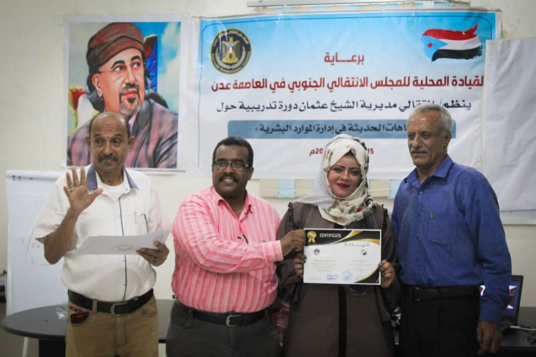 انتقالي الشيخ عثمان يختتم الدورة التدريبية الخاصة بالإتجاهات الحديثة لإدارة الموارد البشرية