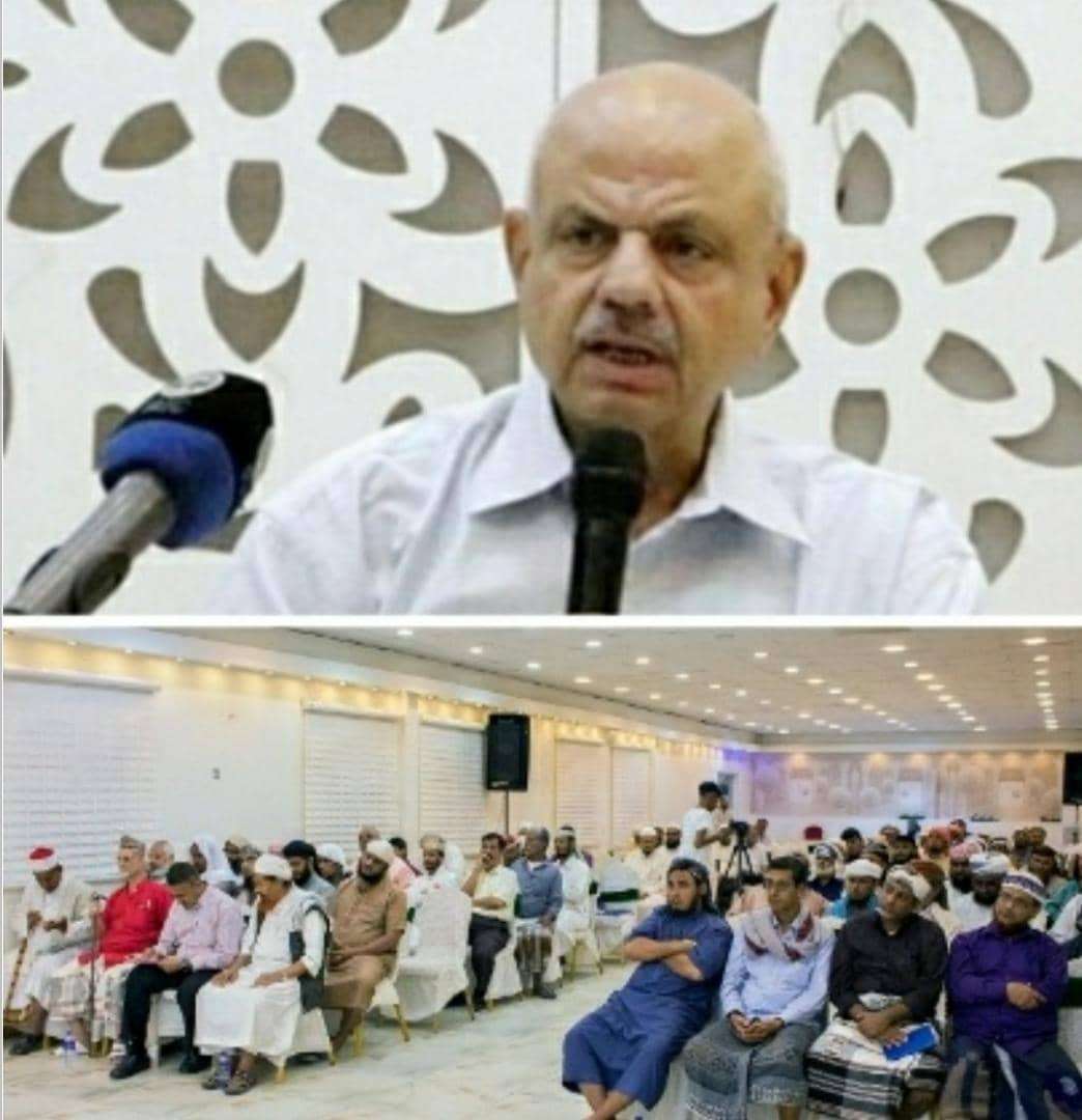 وسط جمعكم الطيب المبارك هذا، يطيب لي أن أنقل لكم تحيات الرئيس القائد عيدروس بن قاسم الزُبيدي، رئيس المجلس الانتقالي الجنوبي، القائد الأعلى للقوات المسلحة الجنوبية، نائب رئيس مجلس القيادة الرئاسي، متمنياً لكم وللقاءكم التشاوري هذا كل التوفيق والنجاح .