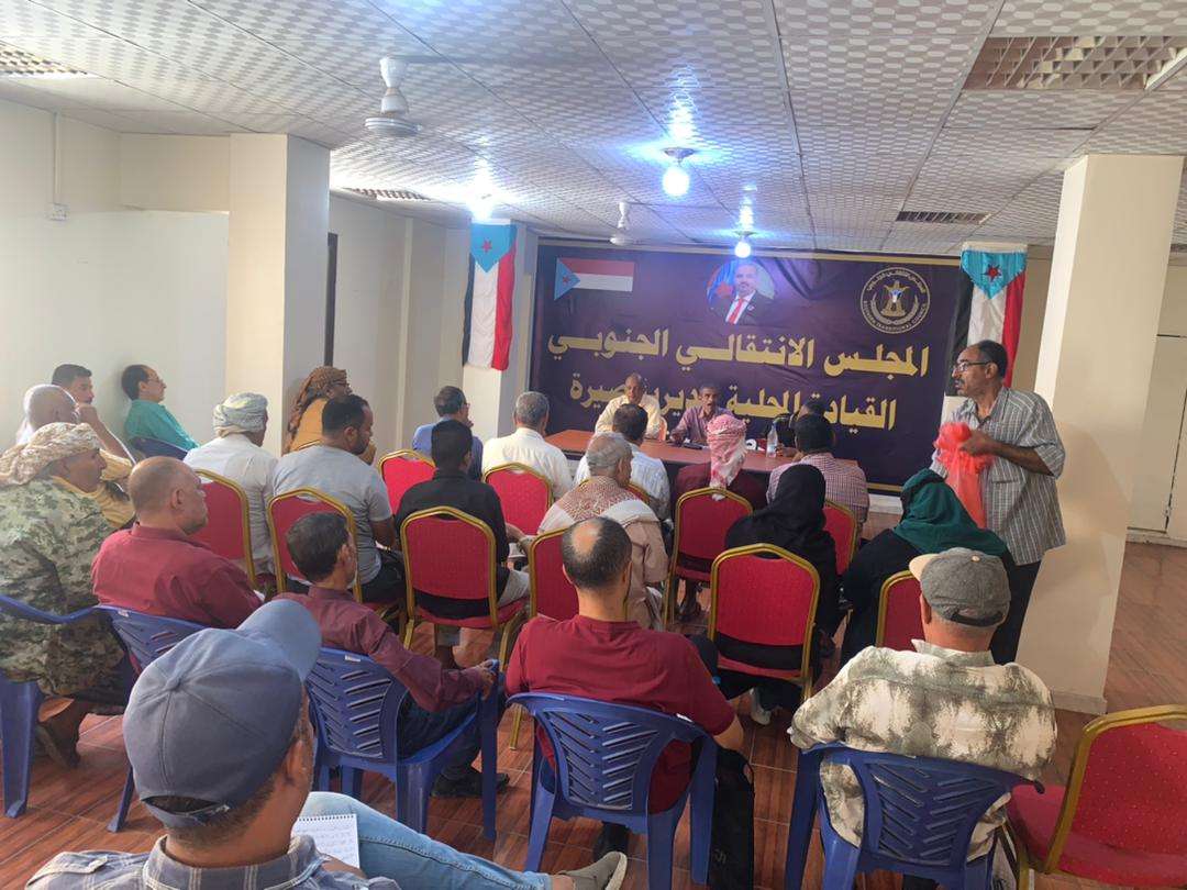 عقدت الهيئة التنفيذية للقيادة المحلية للمجلس الانتقالي الجنوبي في صيرة بالعاصمة عدن، صباح اليوم، لقاءً موسعا مع رؤساء اللجان المجتمعية في مقر قيادة المجلس بالمديرية.