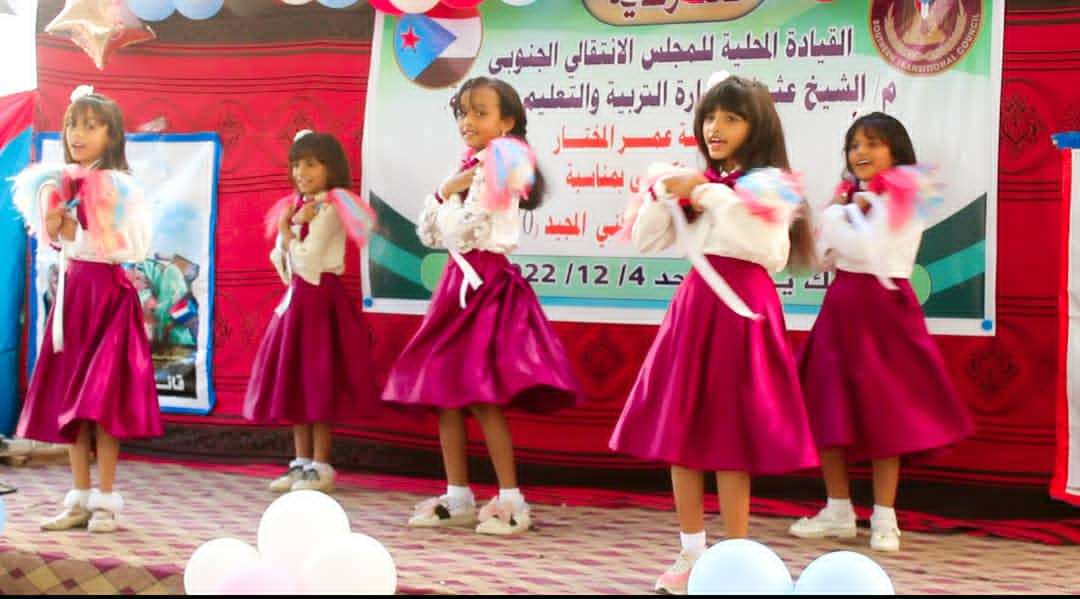 نظمت القيادة المحلية للمجلس الانتقالي الجنوبي في الشيخ عثمان بالعاصمة عدن، بالتعاون والتنسيق مع إدارة مكتب التربية والتعليم بالمديرية، اليوم، إحتفالية فنية طلابية بمناسبة الذكرى الـ55 لعيد الإستقلال الوطني الثلاثين من نوفمبر المجيد وذلك على مسرح وساحة مدرسة عمر المختار .