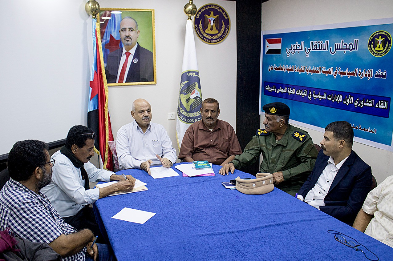 سياسية انتقالي العاصمة عدن تعقد لقاءً تشاورياً مع مديري الإدارات السياسية بقيادة المديريات.