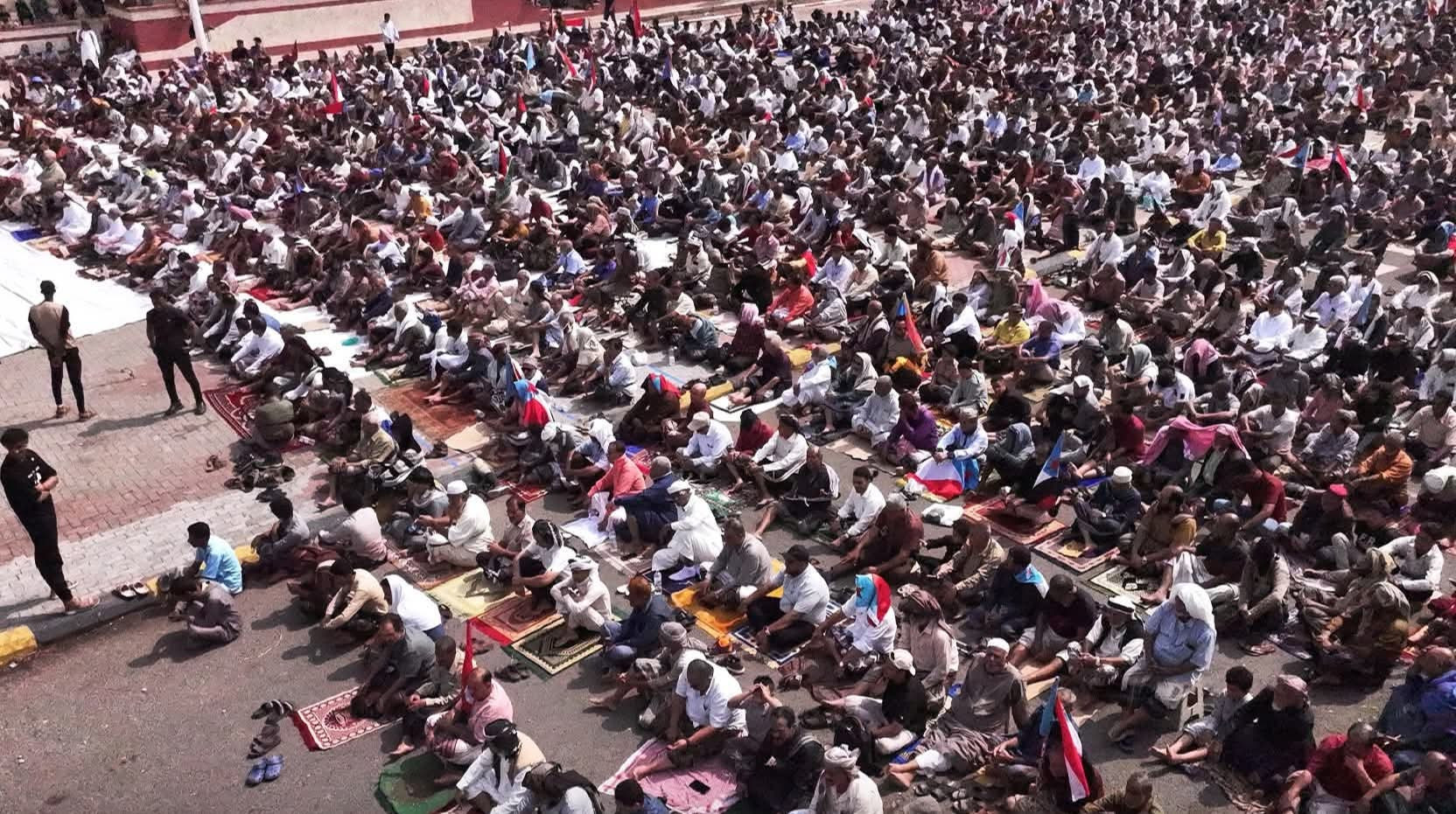 العاصمة عدن.. حشود غفيرة تؤدي صلاة "جمعة الثبات والتمكين" بساحة الاعتصام بخور مكسر