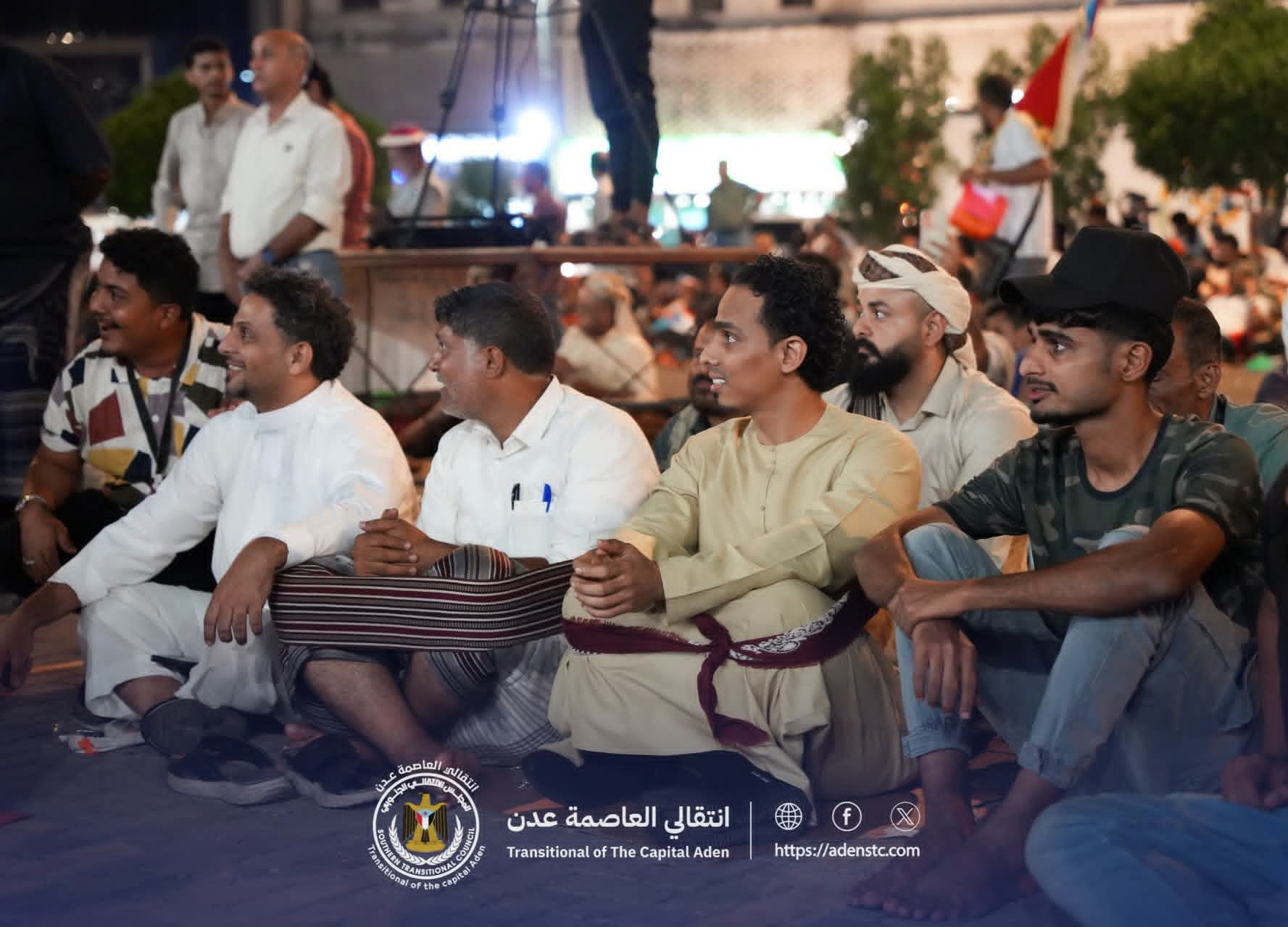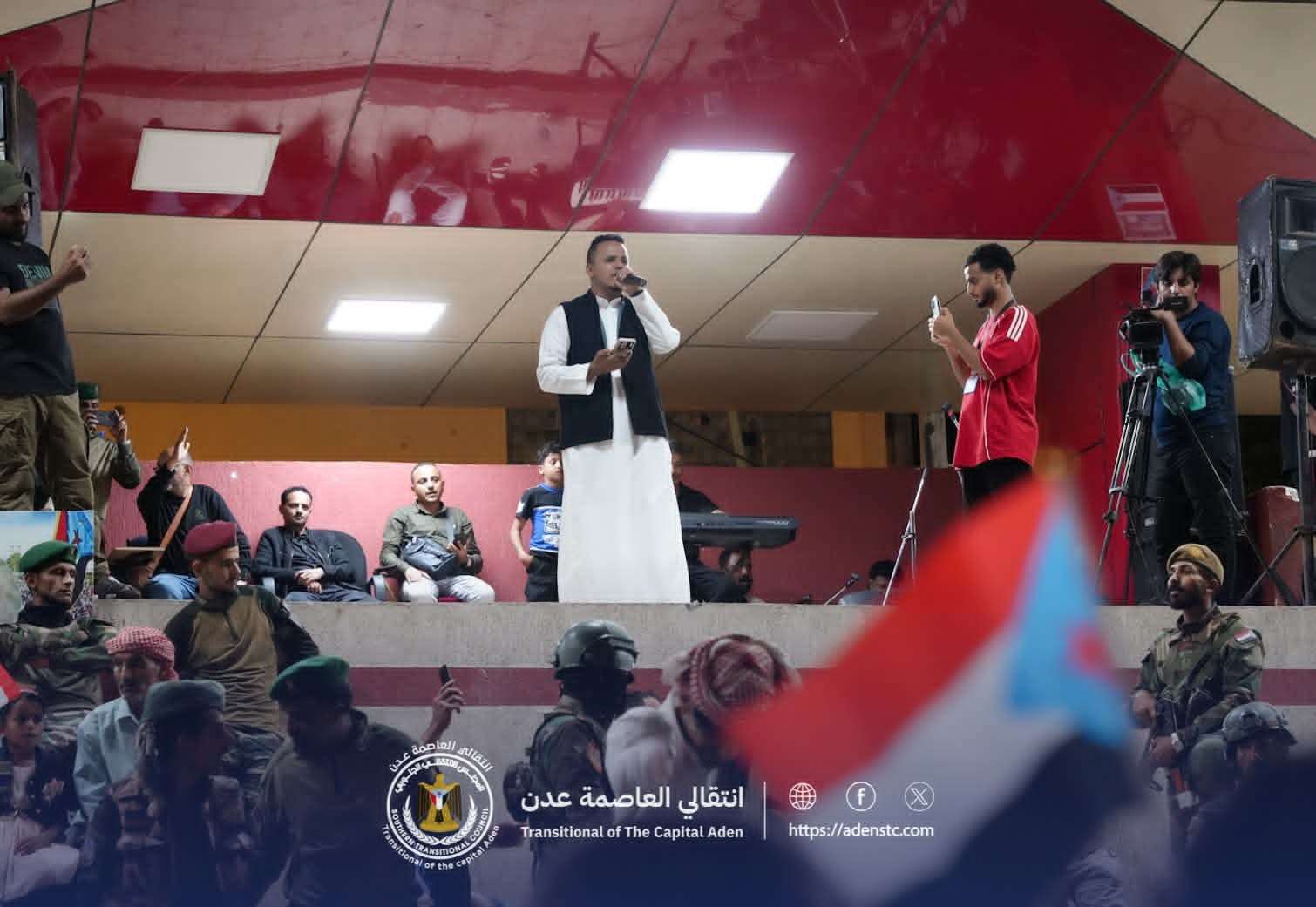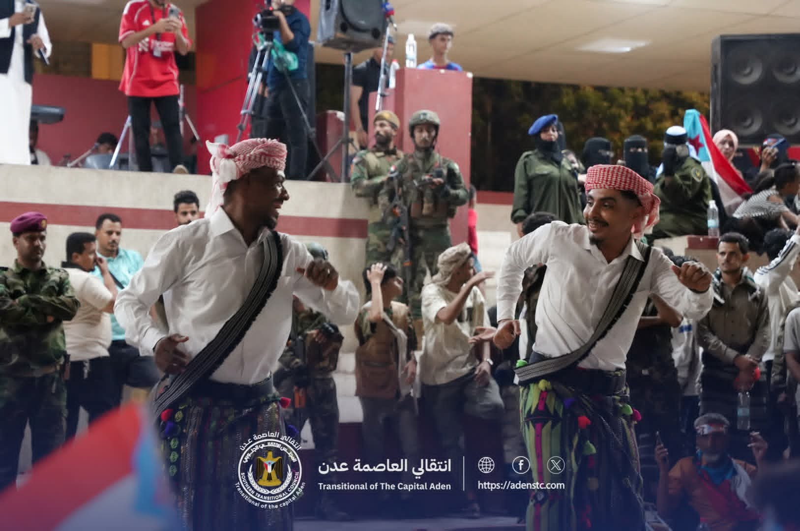 وتخللت الأمسية وصلات غنائية وطنية ورقصات فلكلورية من التراث الجنوبي، قُدمت في أجواء حماسية وثورية عكست تلاحم الفن مع الهوية الجنوبية والموروث الثقافي الأصيل، ولاقت تفاعلًا واسعًا من قبل الحضور.